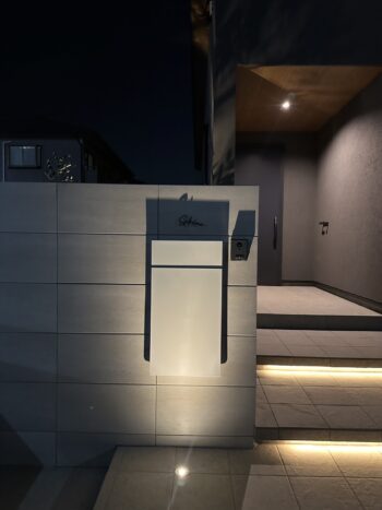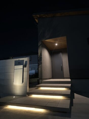 フロート階段は300角のタイルで、門柱の色に合わせたものを使用しました。