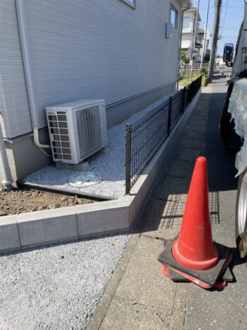 境界ラインはスタンダードブロックとメッシュフェンスを設置しました。